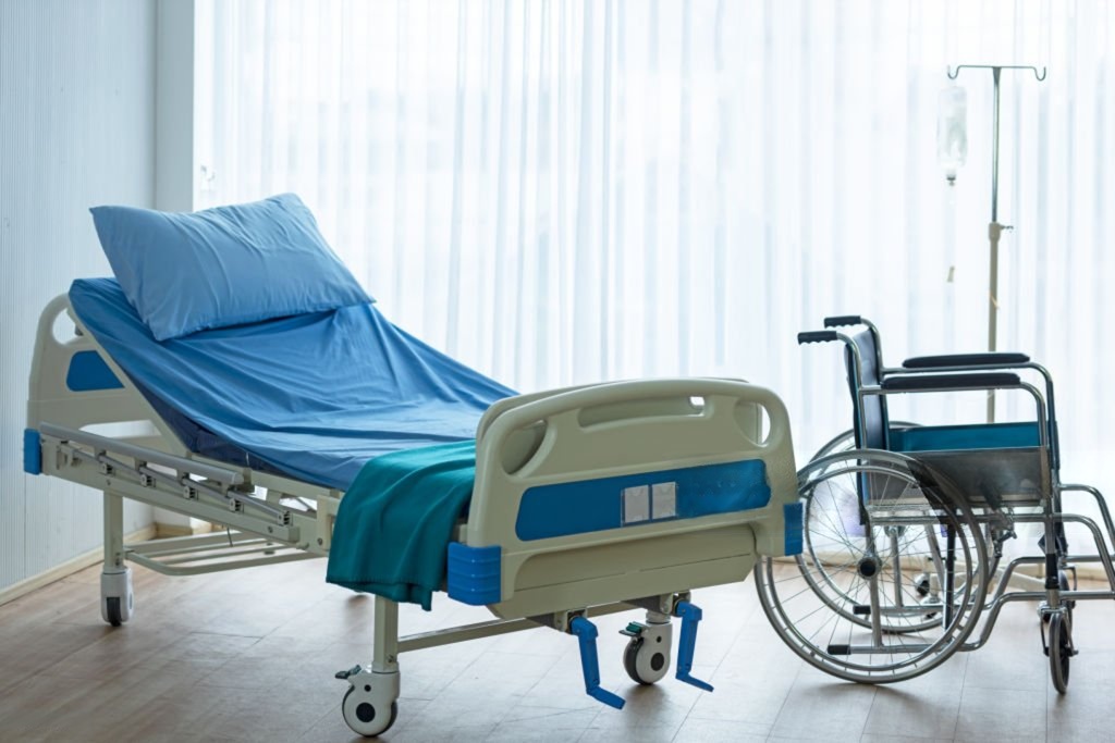 Manual Single and double crank beds, electric beds, anti-decubitus mattresses, step stool, over bed tables